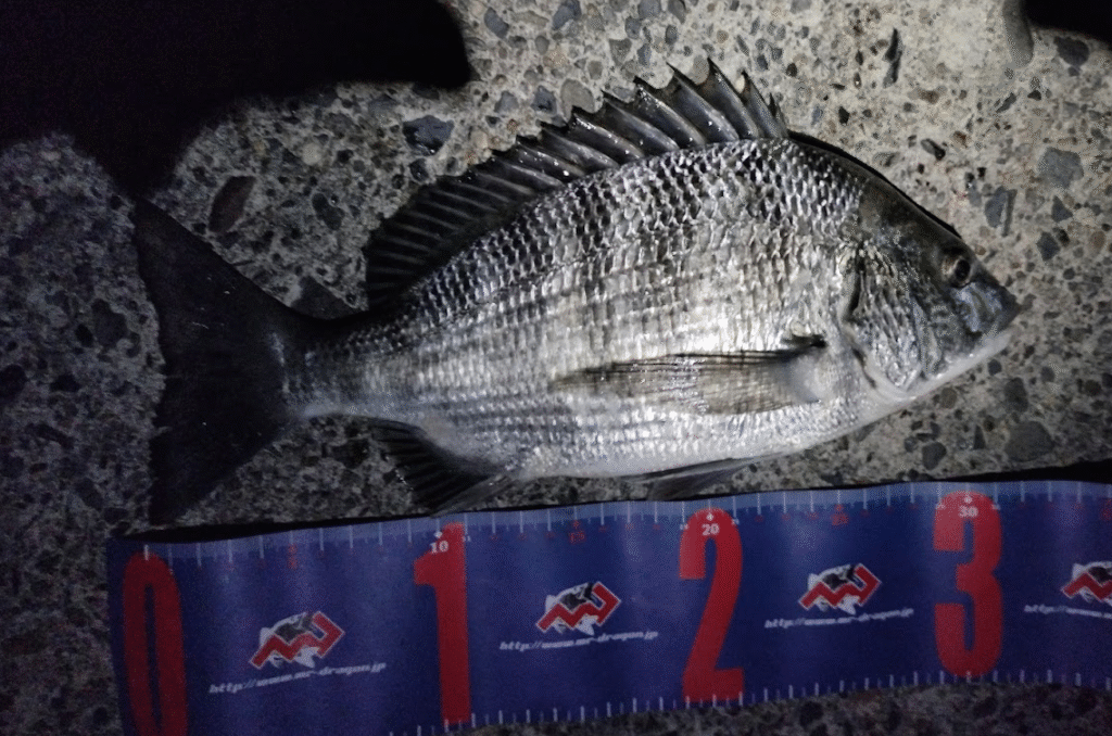 釣れたのは27cmのクロダイです。